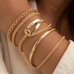 Stackable set including Cuban rope, paperclip chain, and adjustable tie-knot bangle